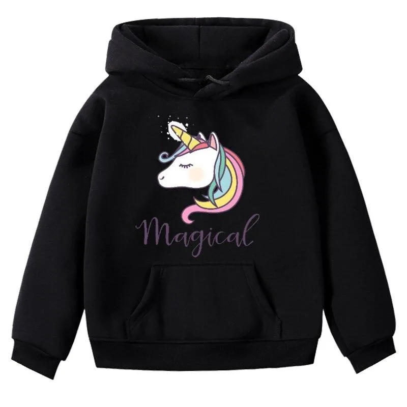 Laissez votre fille vivre sa fantaisie avec ce pull licorne manches longues à capuche. Ce pull licorne est très confortable grâce au spandex et au coton organique à fibre extrêmement longue dans sa composition. Sa qualité de finition offre également une grande liberté de mouvement, pour toutes les morphologies.